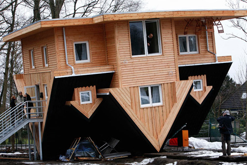 For some reason, some of the most popular crazy house designs are those where the building appears to the human eye to be upside down. These optical illusions are popular with those looking to attract attention to their abodes and designs range from columned mansions, to wooden lodges, all of which appear to have been lifted up and dumped on their roofs.
