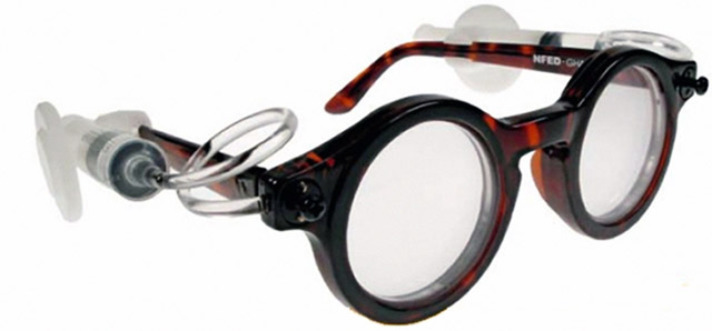 Silver referred to the idea of self-adjustable glasses as a ‘tremendous glimpse of the obvious’, and the glasses function on the simple principal that, generally, the fatter the lens the more powerful the prescription. To this end, the glasses come equipped with plastic lenses which house small liquid sacs connected to syringes on the arms of the frame.