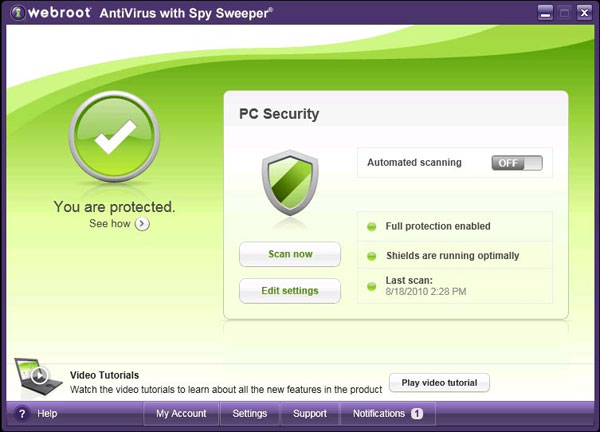 this program is designed mostly for home use, and as such it has a very simple installation process. The user interface is also very easy to understand, with clearly demarcated icons and tabs. They are various setting which the user has access to, which dictate the level and type of security settings they want on their computer. For instance, you can select to perform scans manually or automatically on your computer.