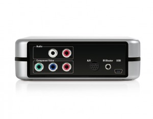 On the back are connections for component video, right and left audio, S-Video, USB, and an IR blaster. The company supplies cables for all, as well as an infrared remote (and batteries) to control your cable box.