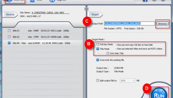 Step A: Run the software, insert BD and “Load BD” button.