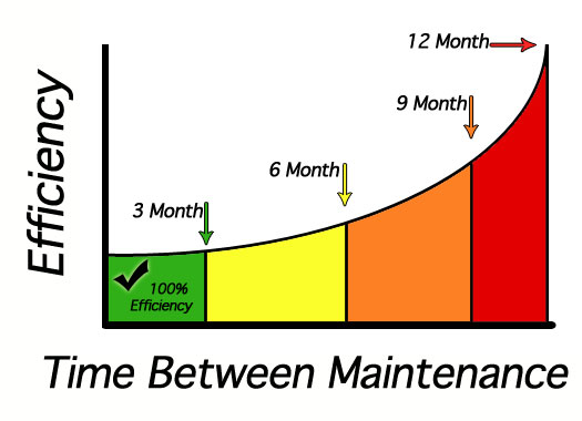 A blocked or dirty filter within your air conditioning system massively reduces the efficiency of the system. Not only does the system begin to cost you more to run, but you also start to experience some of the negative aspects that are poorly maintained air conditioning unit or dirty filter can bring. Additional background noise, stagnant smells, poor performance and taking longer to heat the room are all common symptoms whenever an air conditioning unit is not maintained correctly.