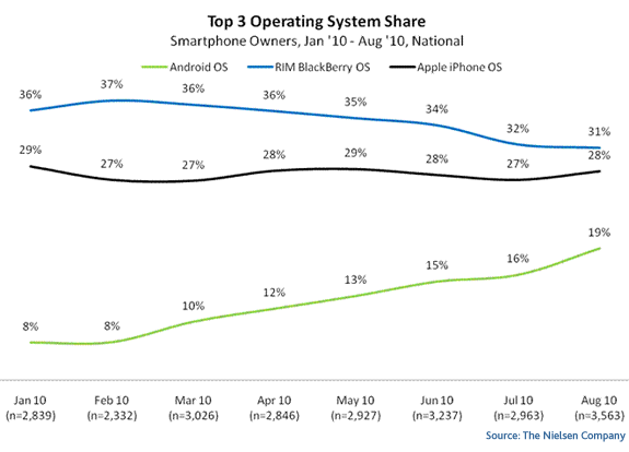 The above account by Mashable.com is yet another blow to the iPhone camp, which has already been reeling under negative press of the latest iPhone 4. Data released recently by The Nielsen Company confirms what many analysts have known all along: The iPhone needs to change one thing about itself to survive.