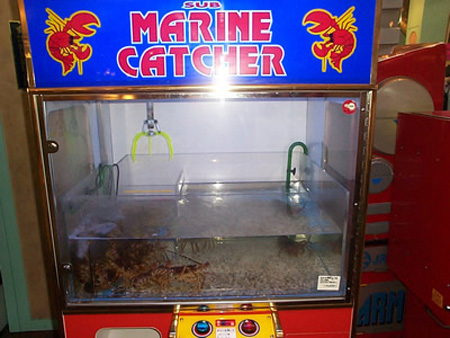 One of the stranger examples, and also one that is actually rather cruel when you think about it (well, you don’t really need to think about it that much). Somewhat bizarrely labelled “Sub Marine Catcher”, the machine is essentially a tank filled with live lobsters that just so happens to have an arcade-style grabbing claw fitted. What you do after catching one is anyone’s guess; how do you transport the thing, anyway? Fortunately some places do offer to cook your lobster should you catch one, but it’s hardly the same as carrying a cuddly toy home.