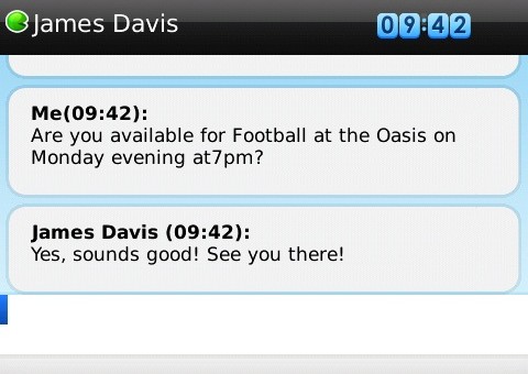 One highlight of the Chit Chat for Facebook (Blackberry) application is the control the user has over the layout and design of the application. Under preferences, users are able to decide if they’d like to see a time stamp displayed next to messages, whether messages should be displayed in a traditional manner or in a speech bubble, and whether or not they want to use emoticons. One major fault here is the emoticons – while there is a stylish variety, they are different from the actual emoticons Facebook uses. It would have been nice if the developers had kept the traditional Facebook emoticons available to users. That said, this is probably due to copyright restrictions and the emoticons within the application are fairly obviously communicating the same meaning as Facebook’s emoticons.