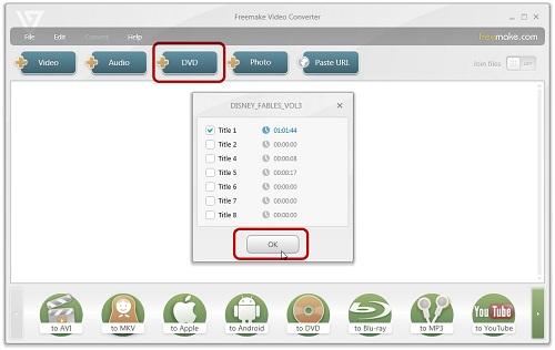 Click the blue “+DVD” button and browse for VIDEO_TS folder on you hard drive or DVD recorder. Usually a DVD has several titles (the movie itself, promo videos, etc.), tick those you’d like to rip.