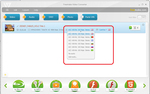 You can also specify the audio track (language) and subtitles which you’d like to retain. The software lets keep only one audio and subtitles option.