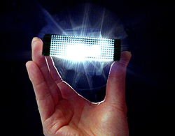It doesn’t stop there, however, because OLED applications extend to a car’s exterior. As light technology has evolved from tungsten bulb to halogen to LED, brake-light and turn signal fixtures have shrunk in size. This removes the need to alter frame design to fit a huge bulb cavity, which also frees up interior space. OLED tech can take that progression one step farther, with brake-lights only a few millimeters thin. Car designers wouldn’t have to do any more that make a shallow indentation into a body panel to fit an entire light assembly. Replacing a broken OLED taillight would be as easy as placing a sticker.