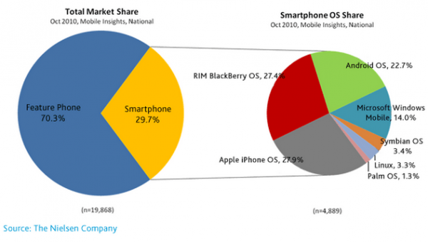 Although these two giants dominate, yet Microsoft and Blackberry still challenge them.