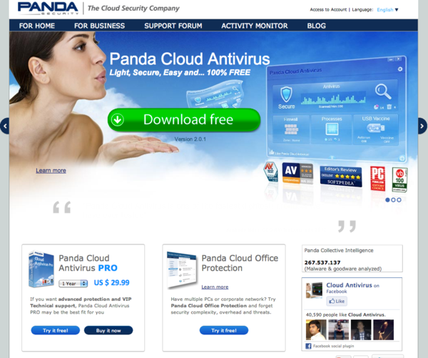 This program has a simple interface that is easy for users to understand. It also offers automatic removal of viruses and malware, along with instant virus definition updates from the cloud. Panda Cloud also features a behavior blocker, which adds an extra layer of security to the computer. Behavior blocking is the wave of the future for AV software and involves monitoring for harmful changes within the system, including startup settings, file modification, disk formatting and network connections.